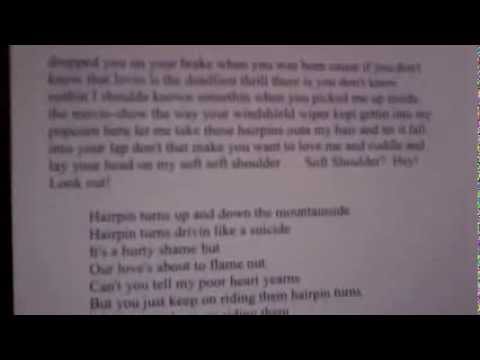 these hairpins outa my hair and let it fall down into your lap don't that make you want to love me and cuddle and lay your head on my soft soft shoulder . . . Soft Shoulder? Hey! Look out!